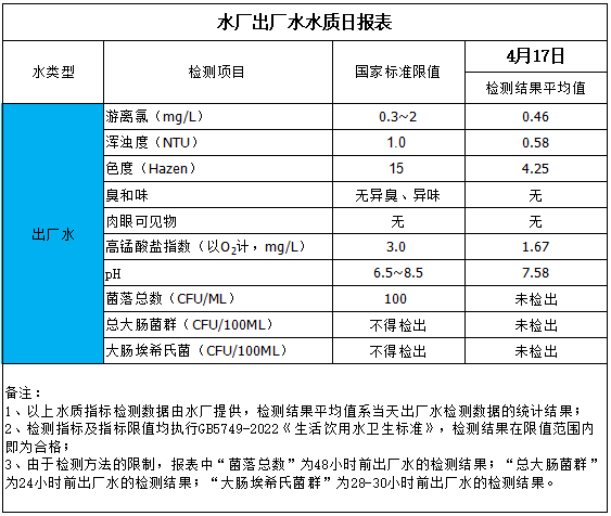 水厂出厂水水质日报表(2025-4-17)