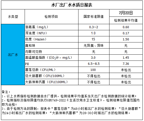 水厂出厂水水质日报表(2025-7-22)