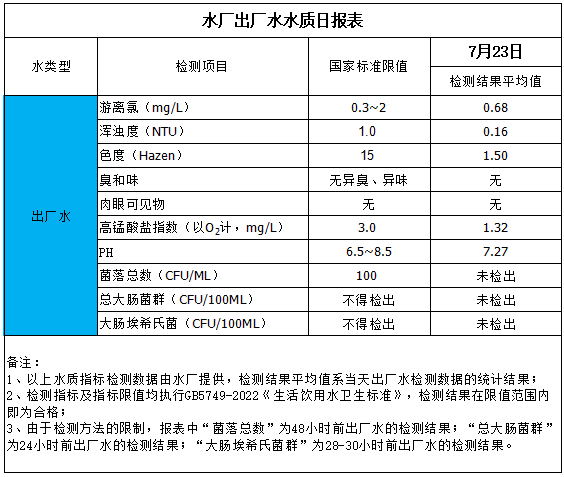 水厂出厂水水质日报表(2025-7-23)