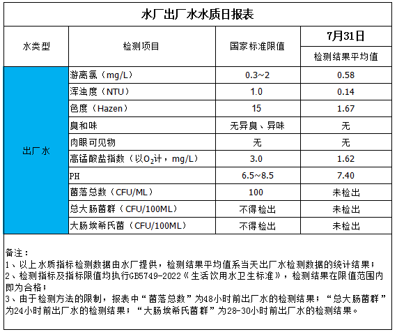 水厂出厂水水质日报表(2025-7-31)