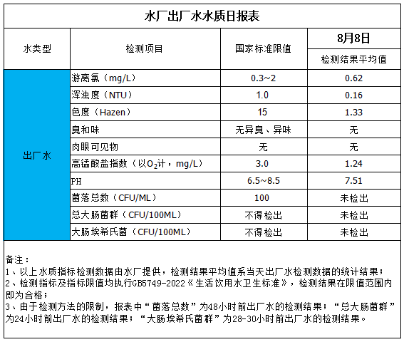 水厂出厂水水质日报表(2025-8-8)