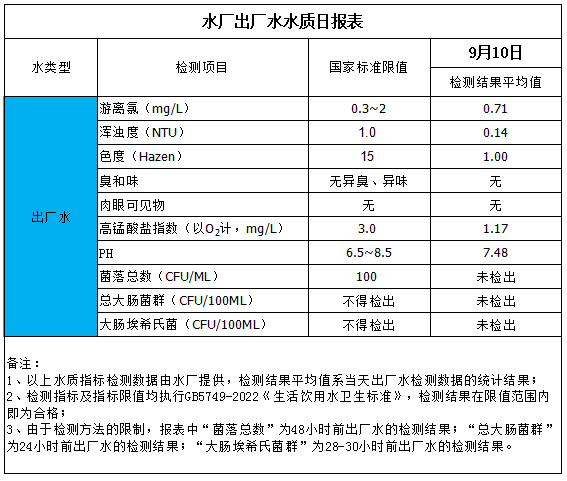 水厂出厂水水质日报表(2025-9-10)