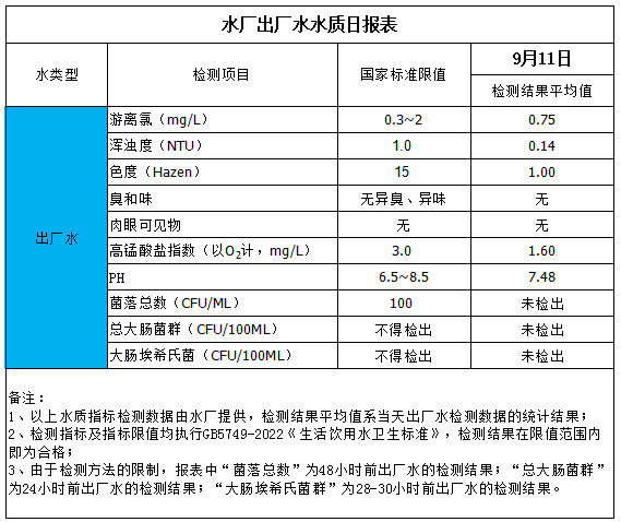 水厂出厂水水质日报表(2025-9-11)