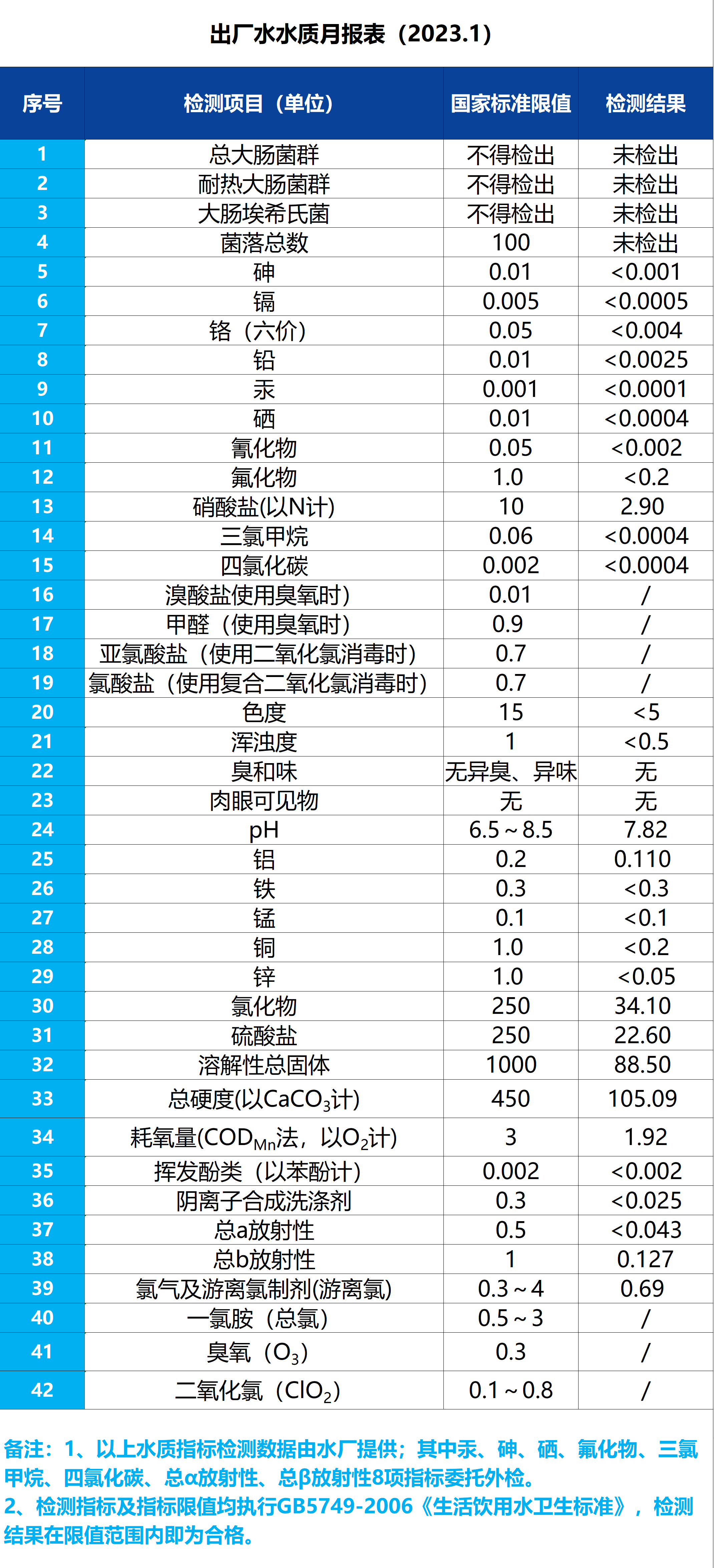出厂水水质月报表(2023.1)