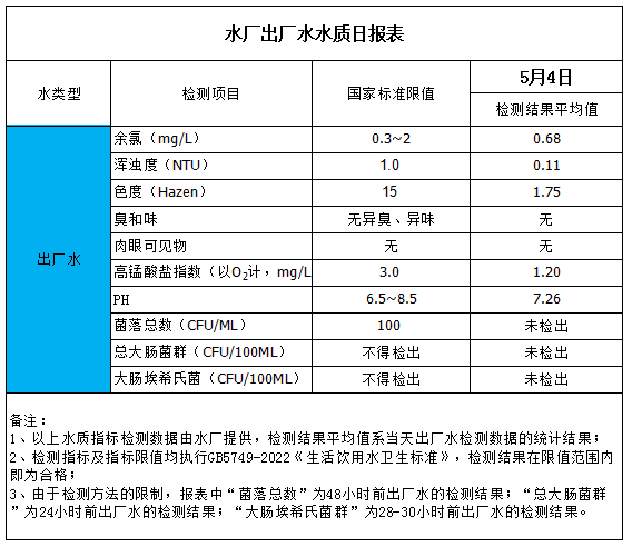 水厂出厂水水质日报表(2023-5-4)