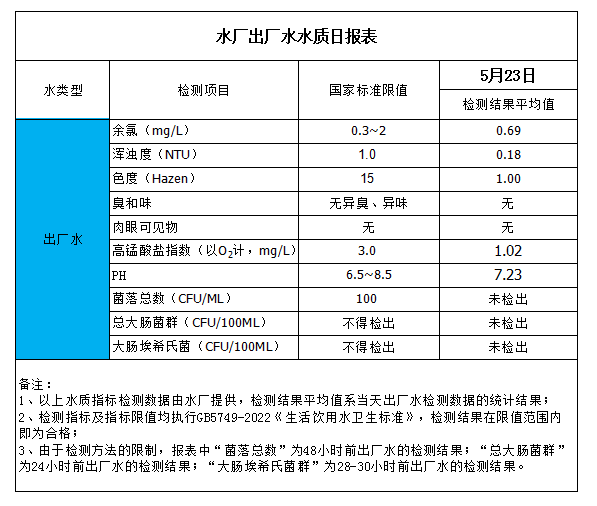 水厂出厂水水质日报表(2023-5-23)