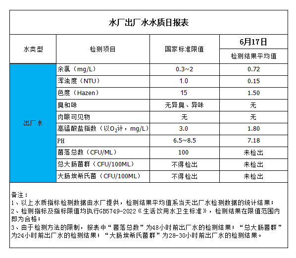 水厂出厂水水质日报表(2023-6-17)