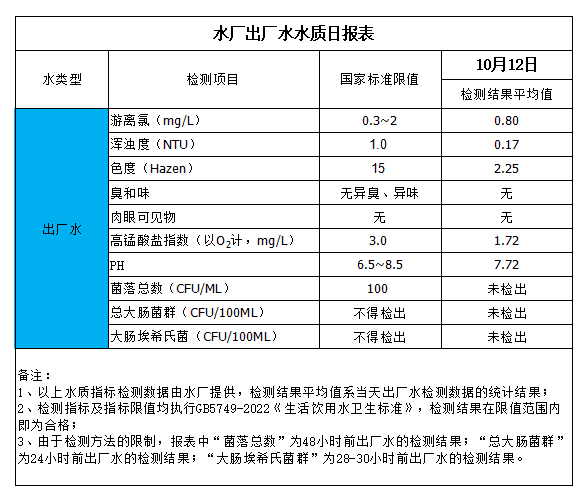 水厂出厂水水质日报表(2023-10-12)